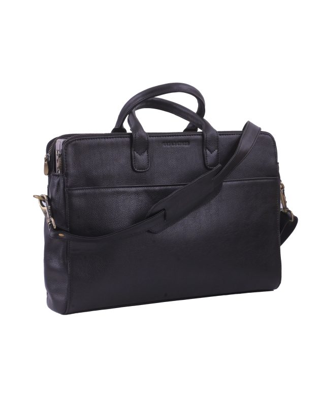 Kas Black Leather Laptop Bag – Elegant, Durable & Professional Design